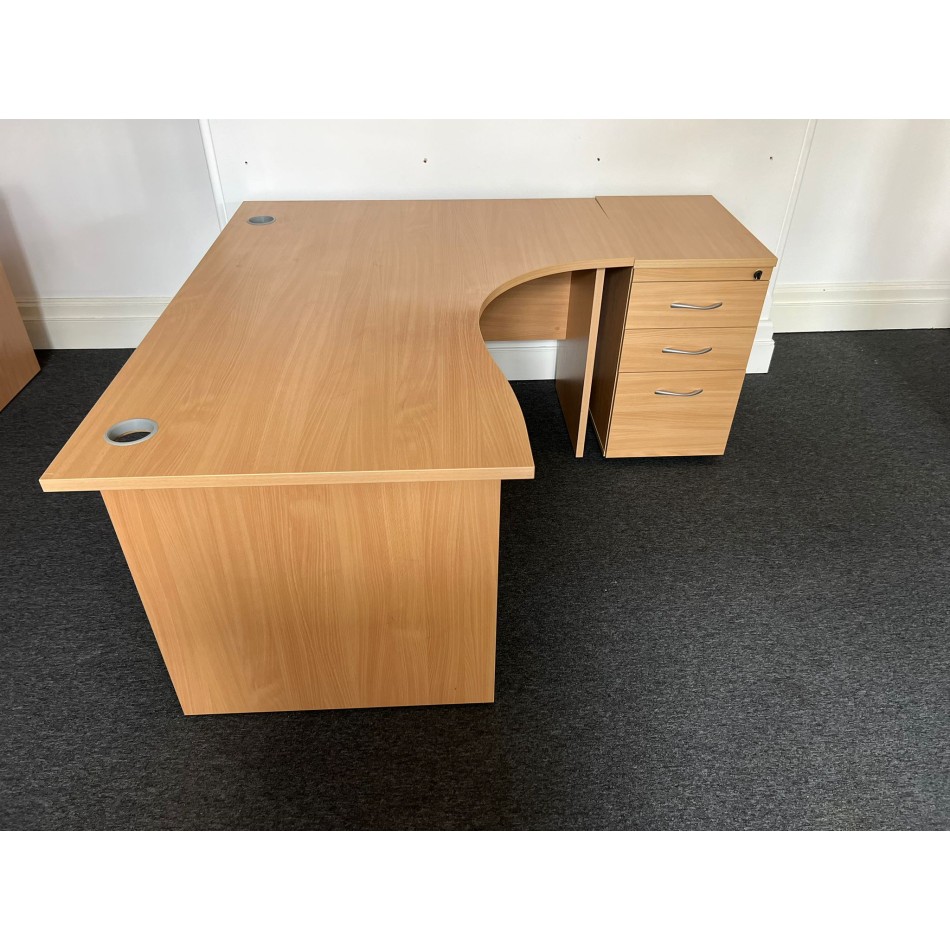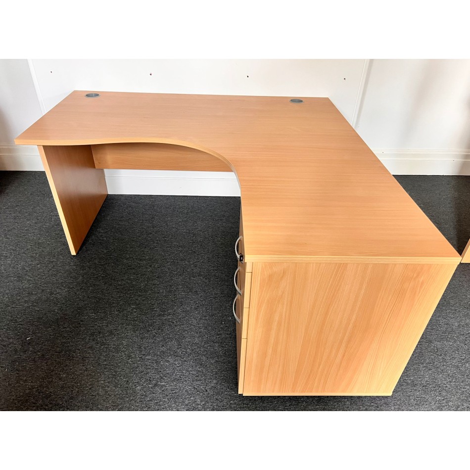 Type: Beech Right Handed Corner Desk and Desk High Pedestal Set 1600- Panel End - Flat packed