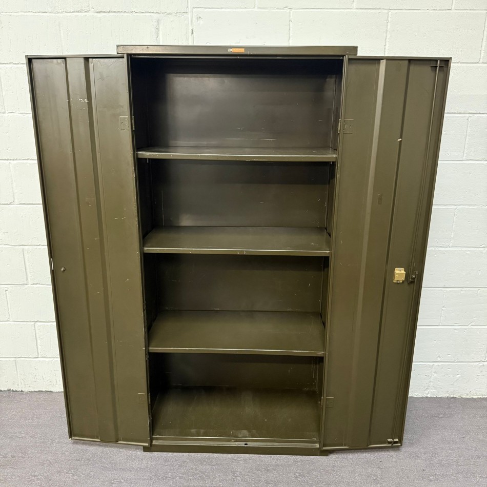 Type: Dark Green Vintage 3 shelf Cupboard. A vintage industrial style with a practical and versatile design