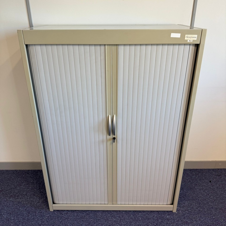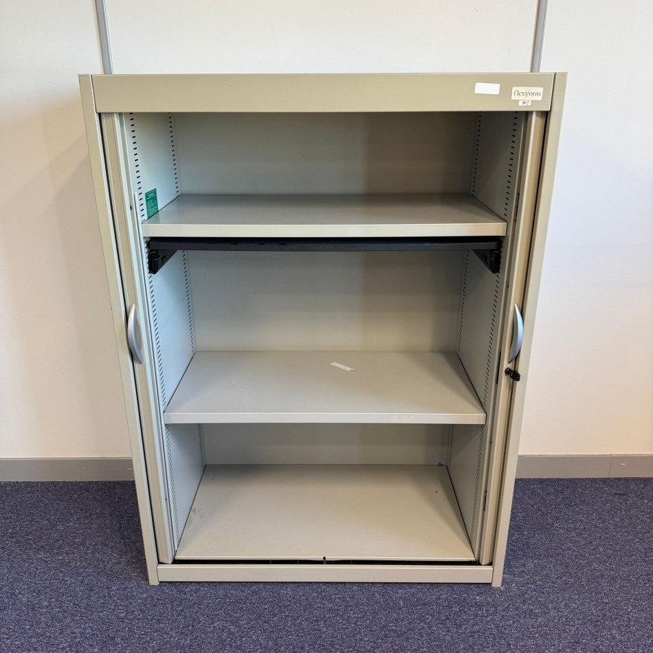 Type: Flexiform Silver and Light Grey 2 Shelf Tambour . A modern style with a practical and versatile design