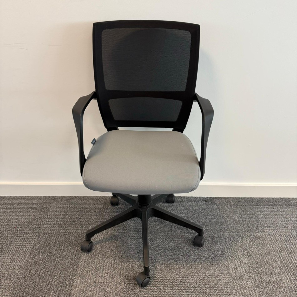 Type: Orbit Grey Operator Chair with a padded seat, and a mesh backrest