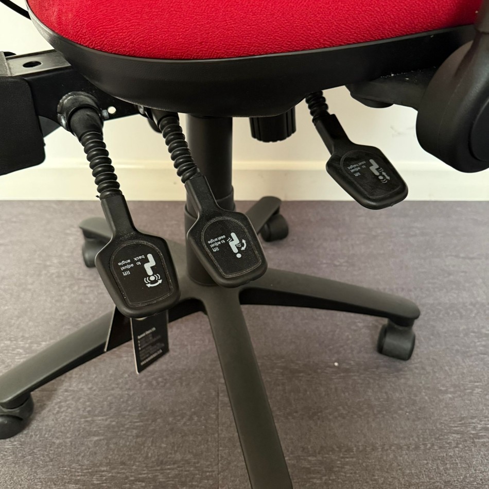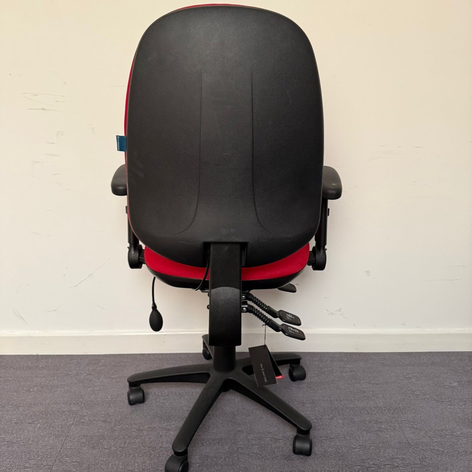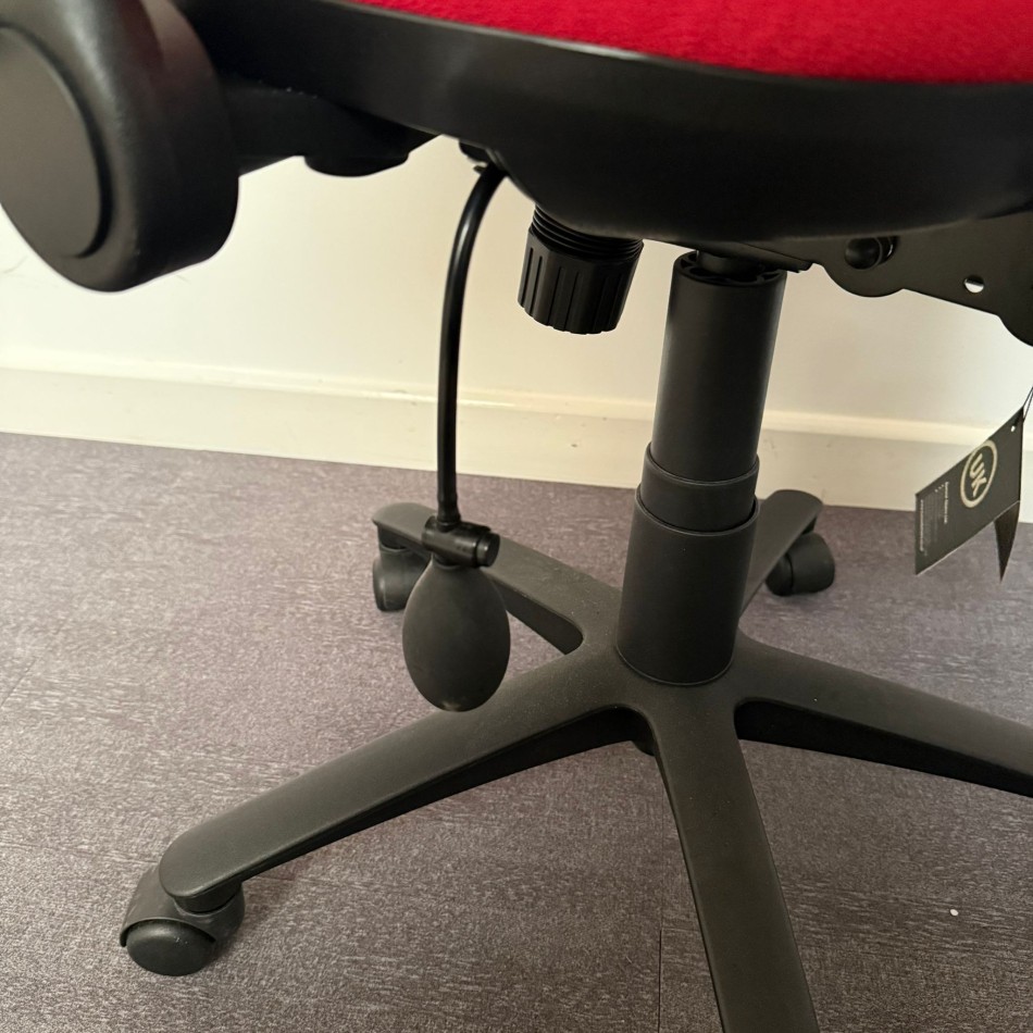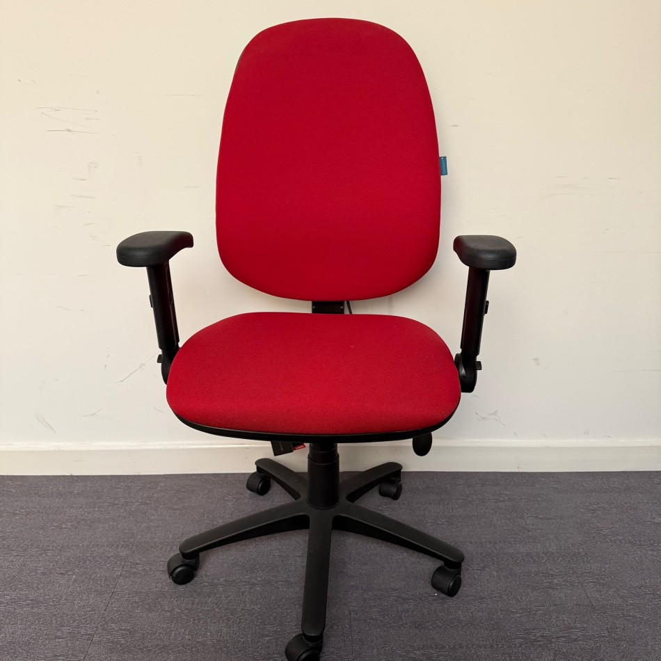 Type: Tiverton Red Task Chair - The Summit Tiverton task chair is a solid, UK-made upholstered office chair with basic ergonomic adjustments, designed for comfortable everyday desk use rather than high-end ergonomic performance