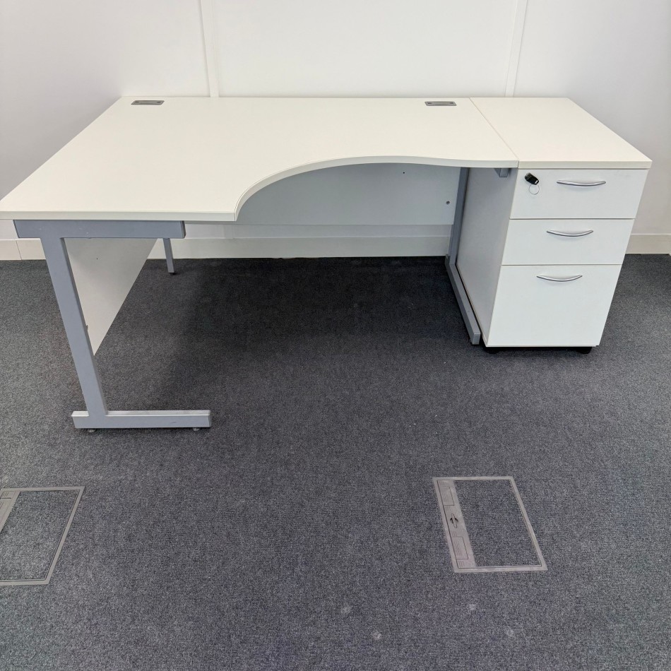 White Left Hand Corner Desk Set 1400mm