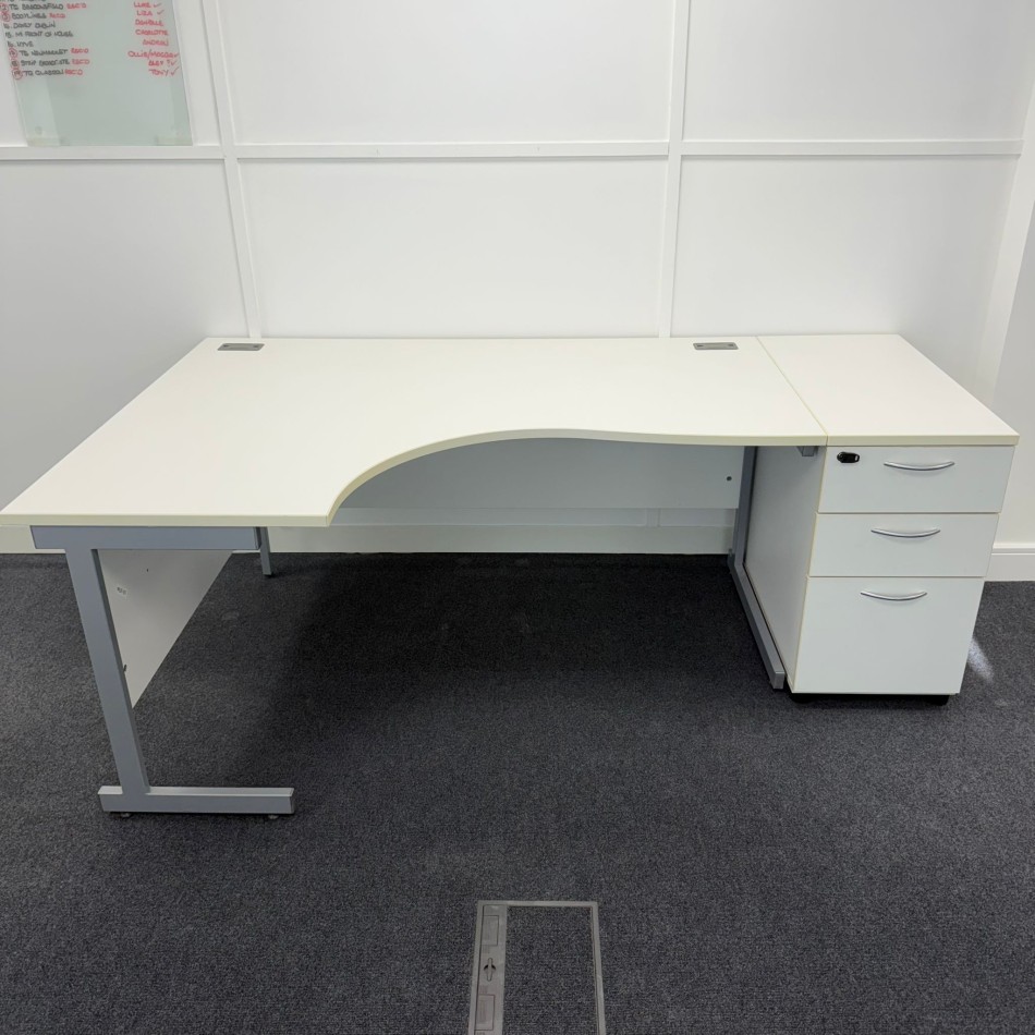 White Left Hand Corner Desk Set 1600mm
