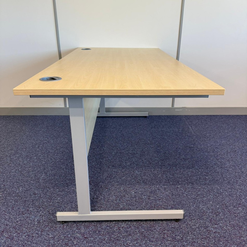 Design: A 1600mm maple desk featuring a spacious work surface —ideal for modern office spaces. Comes with two cable management ports to keep your workspace tidy. Cantilever style legs for the modern look. Legs vary slightly to picture but still a cantilever design.