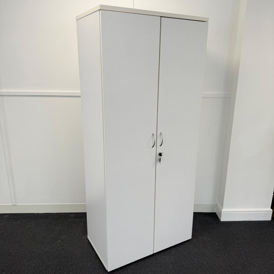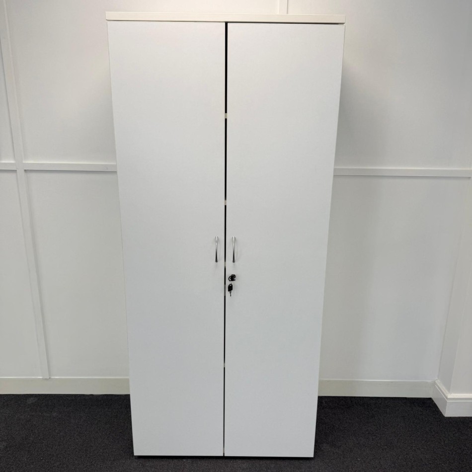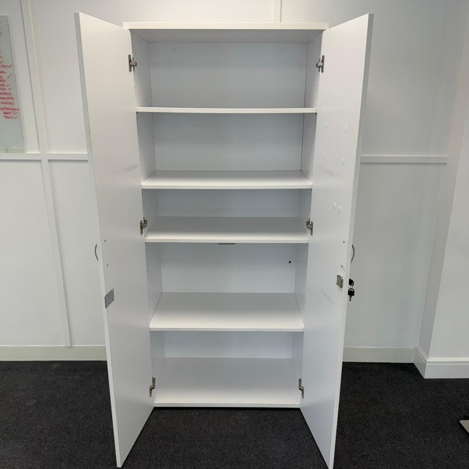 Type: Sleek white finish 1800mm high 4 shelf cupboard . A modern style with a practical and versatile design
